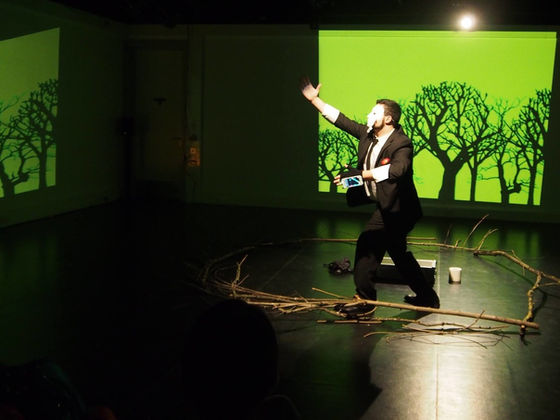 Hunter-Hunted was a digitally-augmented performance performed at the Antonin Artaud centre at Brunel University London as part of a Masters research project. Isadora was to design interactive projections, and Ableton Live to design interactive sounds. All visuals and sounds were triggered through TouchAble iOS app on an iPhone 6 attached to the wrist. The performance explored abstract themes of addiction, depression and rebirth.
